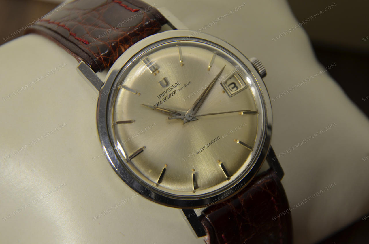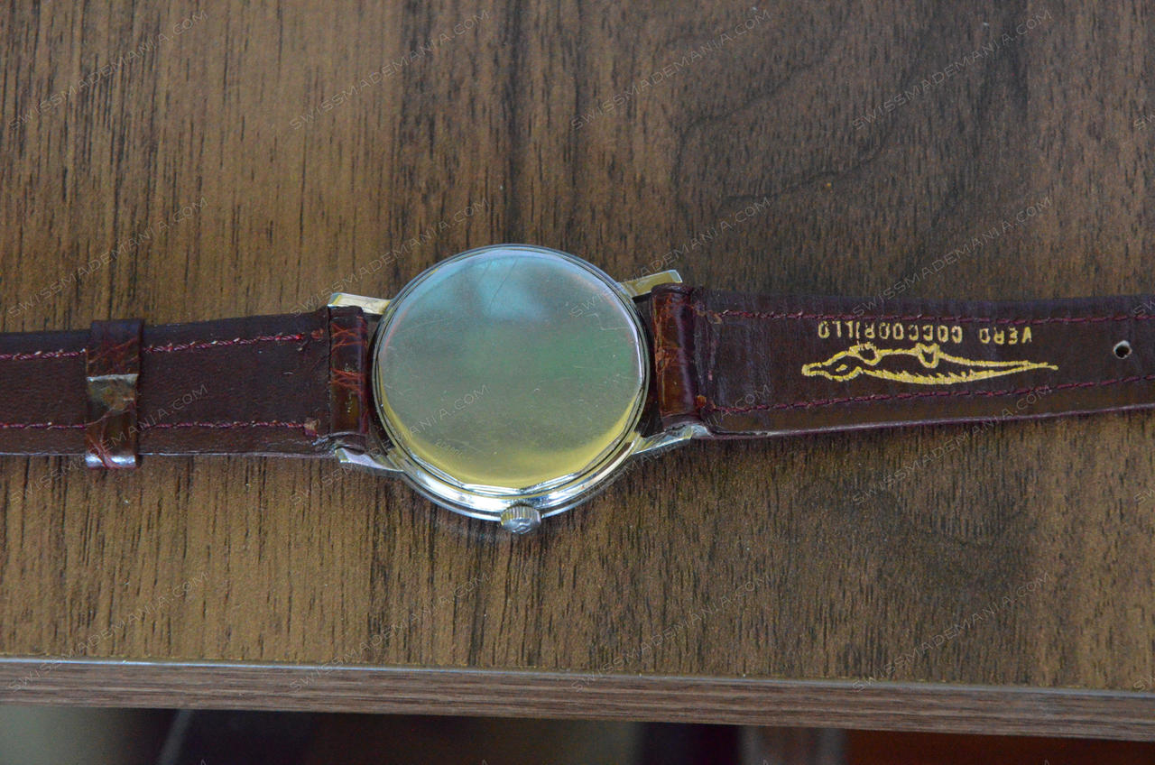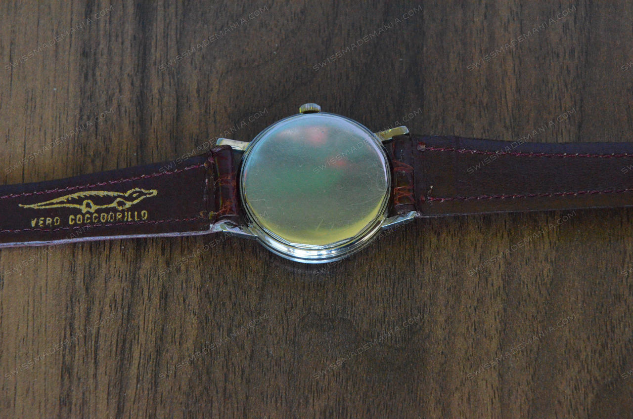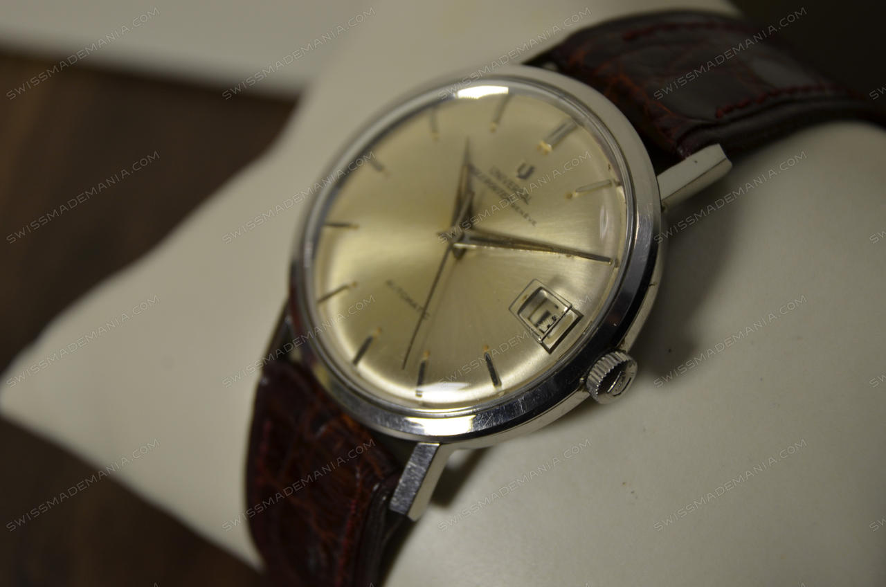 data, carica automatica, cassa acciaio, 34 mm, anno 1958-1962, movimento Universal 215-1, 28 jewels, 18000 A/h, condizioni: ottime. Carica automatica a microrotore.