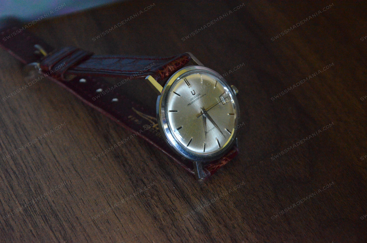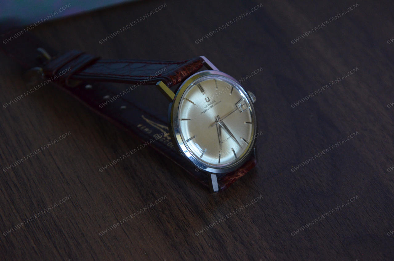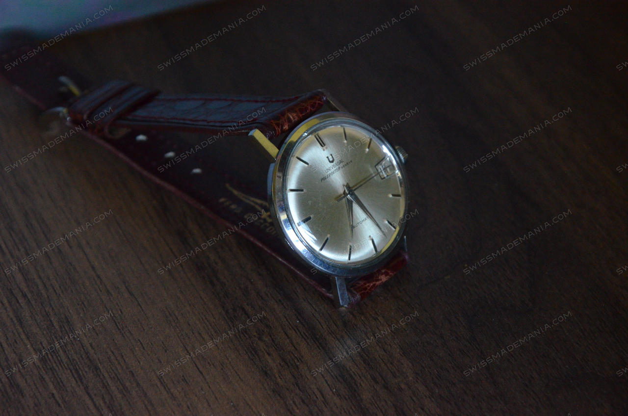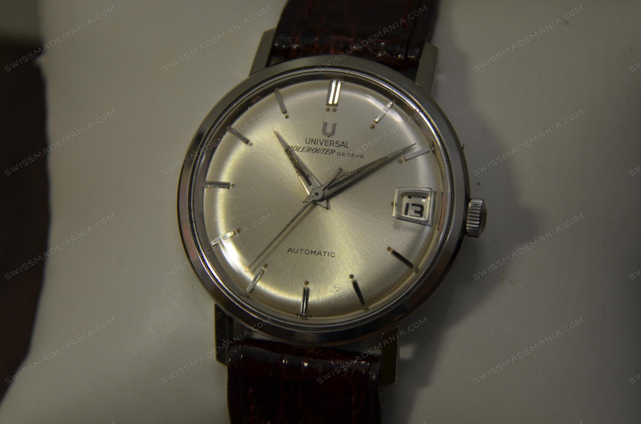 data, carica automatica, cassa acciaio, 34 mm, anno 1958-1962, movimento Universal 215-1, 28 jewels, 18000 A/h, condizioni: ottime. Carica automatica a microrotore.